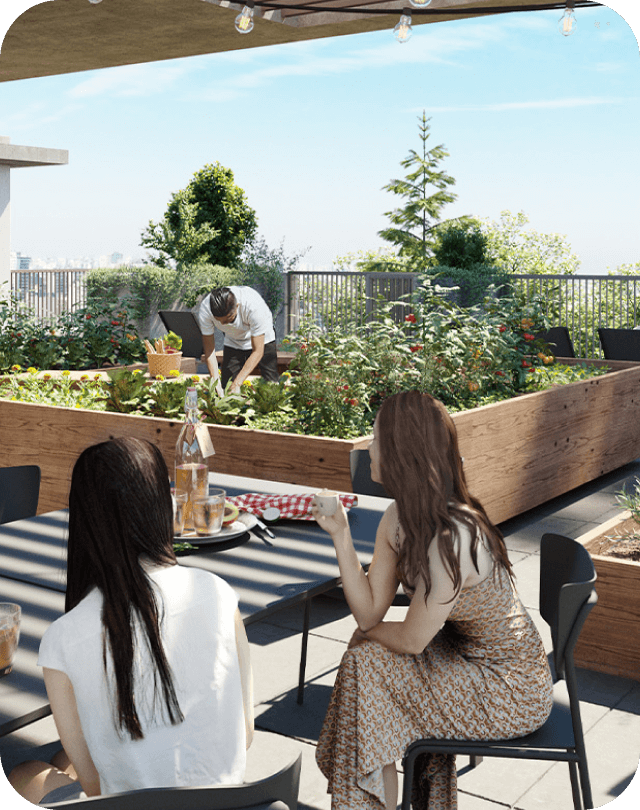 Huerta común para el uso de todos los propietarios en la planta de amenities que incentivará al consumo de vegetales frescos y orgánicos, cuidando la salud y el medioambiente.